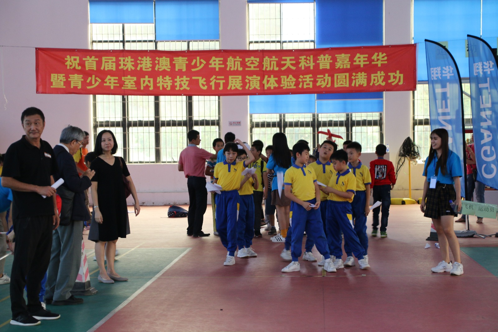 2018-10-27今年为第十二届中国航展举办年,又适逢港珠澳大桥通车的盛事,为了推广航空文化及科普知识,促进航模运动的交流,提升珠港澳及周边地区青少年对航空活动和航空科普知识的兴趣,给珠港澳地区青少年搭建一个交流观摩与竞技的平台,同时给中国航展添彩助庆,由珠海市科学技术协会、香港中华青年宇航学社、澳门悅海洋教育培訓协会主办的“首届珠港澳青少年航空航天科普嘉年华暨青少年室内特技飞行展演体验活动”于2018年10月27-28日在珠海市金湾三灶中心小学举行。